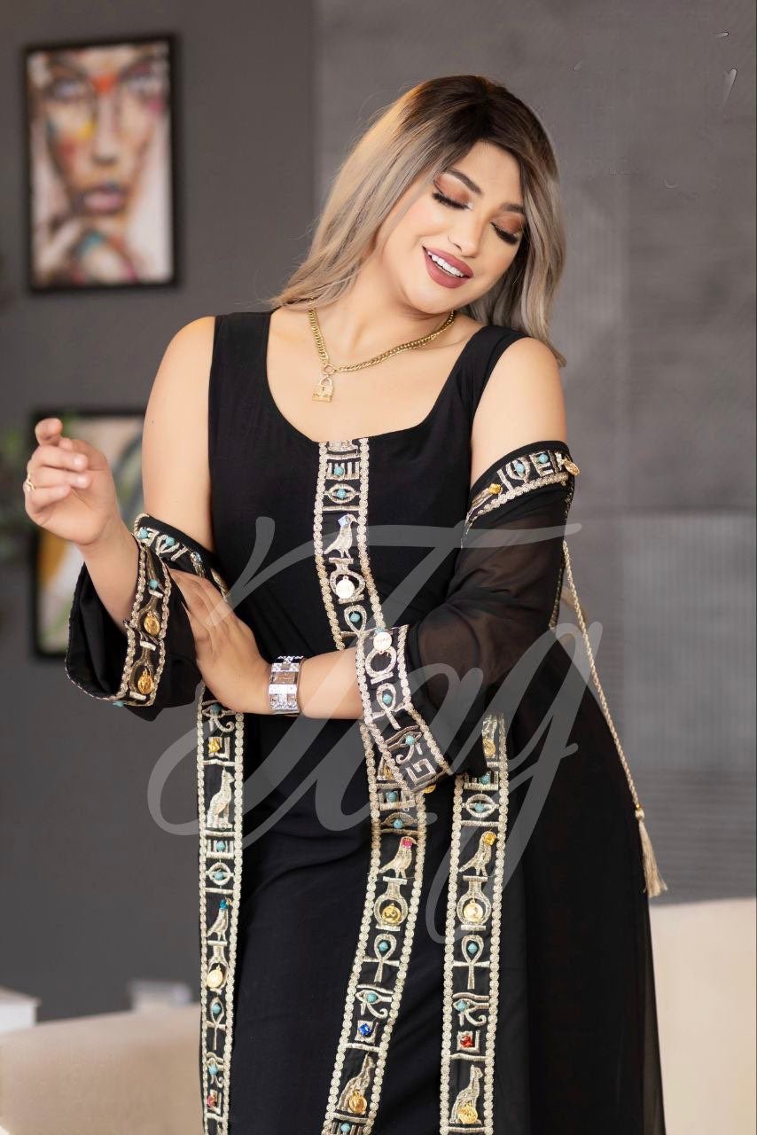 The Rayah Embellished Abaya is a stunning piece from Arewa Collections that is sure to make a statement. Made from high quality chiffon, this abaya features intricate prato embroidery on the body and a beautiful buzzcut ITW design. The combination of these two elements creates a unique and eye-catching look that is perfect for any occasion. The chiffon cape adds a touch of elegance and sophistication, making this abaya a must-have for any fashion-forward individual. With its impeccable craftsmanship and attention to detail, the Rayah Embellished Abaya is a true work of art that will elevate any outfit.