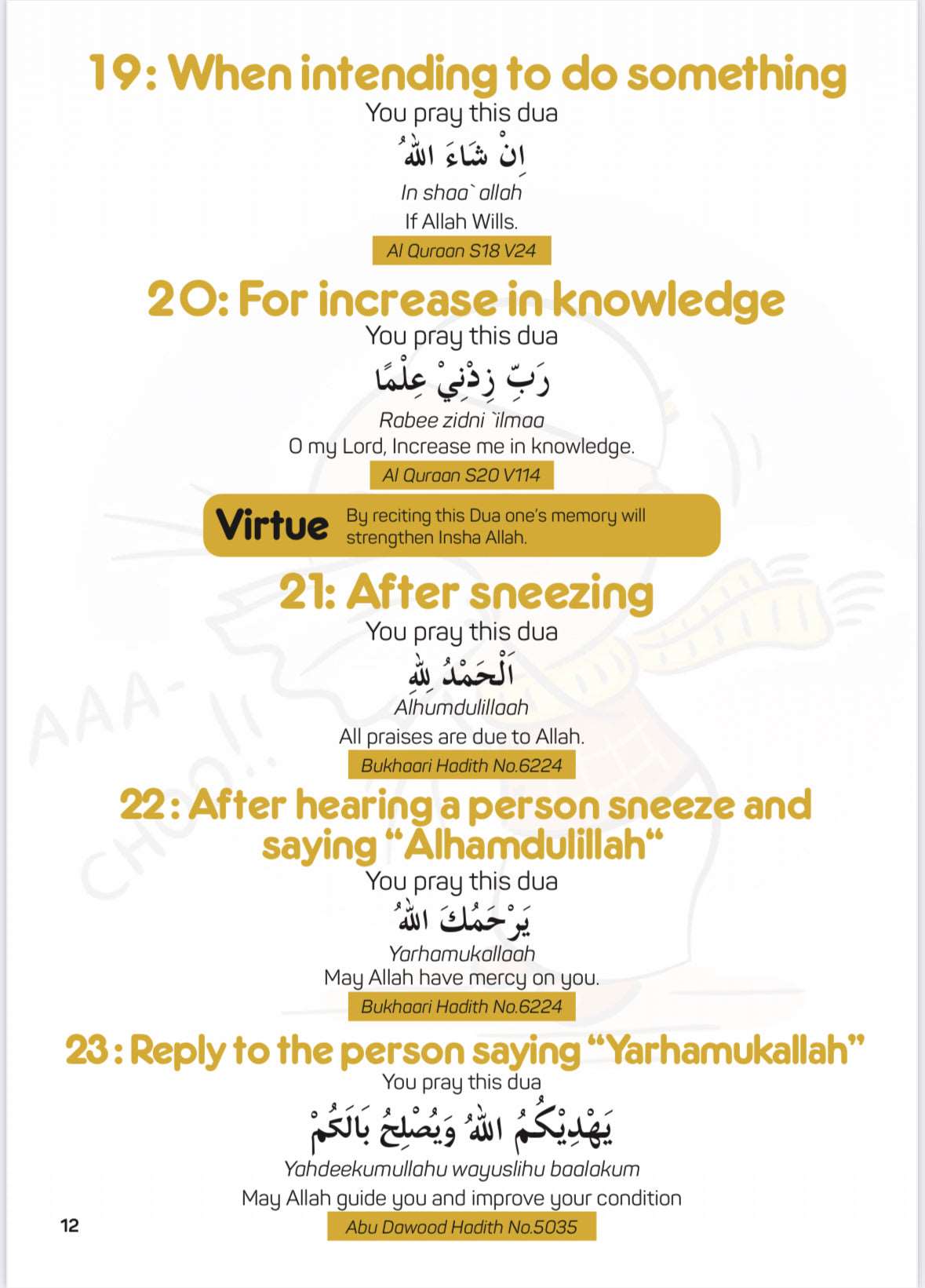 Le Dua Book est soigneusement sélectionné avec des duas authentiques du Coran et des Hadiths en arabe et en anglais, ce qui en fait une ressource précieuse pour tous les musulmans. Que vous soyez un musulman débutant ou expérimenté, ce livre vous guidera dans vos prières quotidiennes et vous aidera à vous connecter avec Allah à un niveau plus profond.